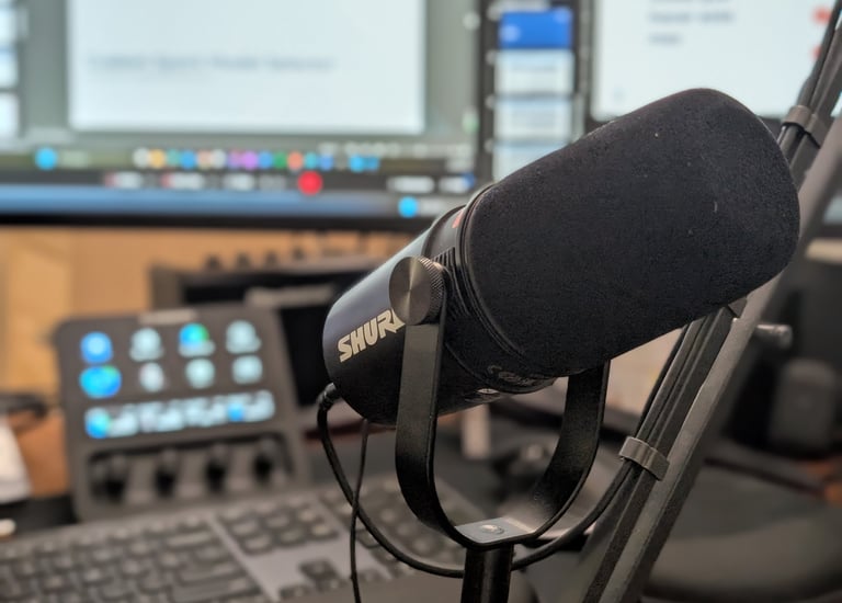 Shure MV7+ & JBL Quantum Stream microphones with Bose headphones